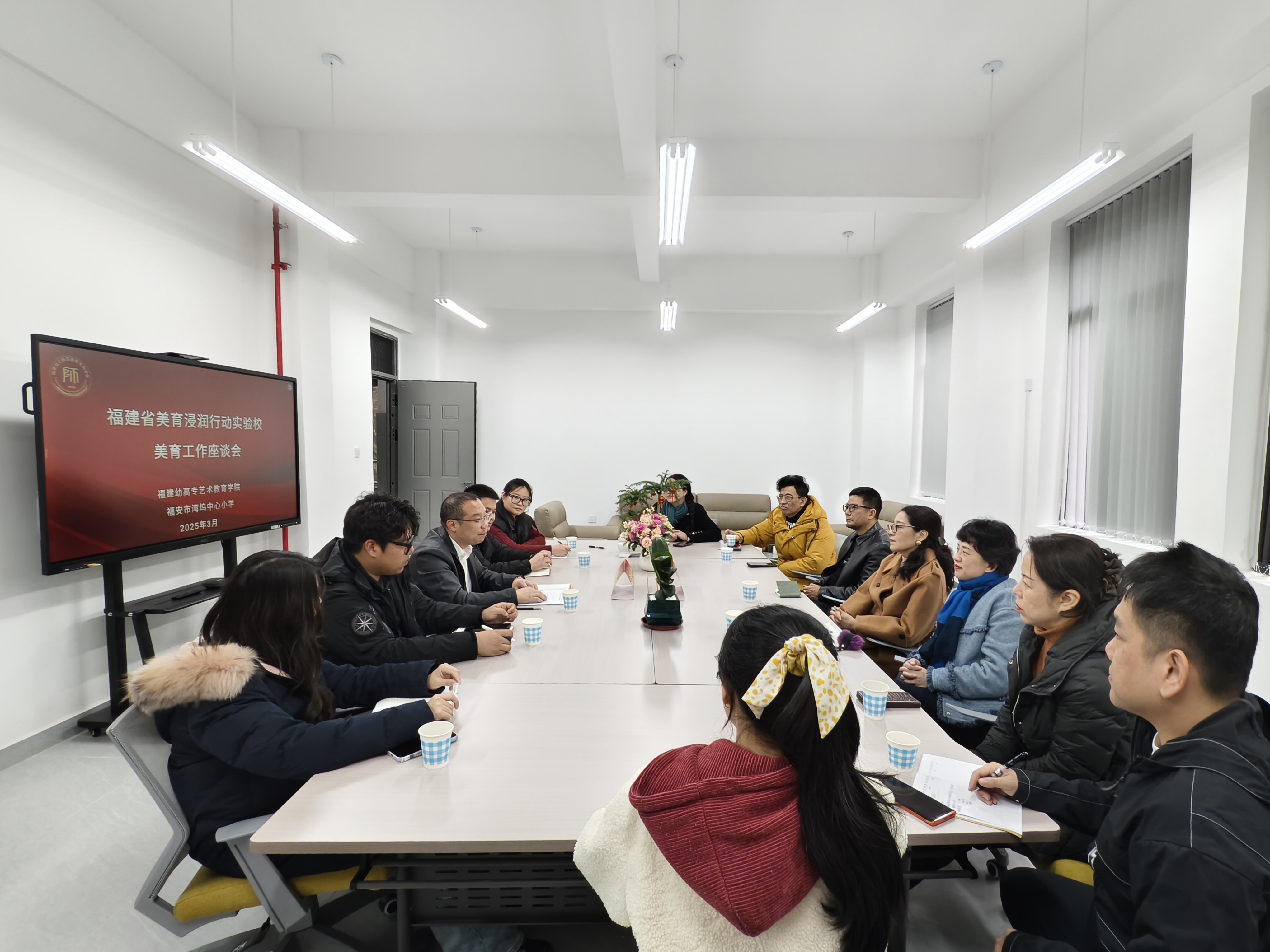 2025年3月5日,福安市湾坞中心小学校长黄文锋一行前往我校开展交流研讨活动。艺术教育学院党总支书记姜琪,院长、福建省学校美育与艺术教育研究中心主任王萍萍,副院长陈青、颜艳以及部分专任教师带领来宾观摩了音乐厅、美术展厅和线狮工坊等艺术实训室。福安湾坞中心小学的领导老师们在充分感受体验我校丰富的美育资源和丰硕办学成果的同时,对我院雄厚的美育师资力量、学生扎实的专业功底、丰富的创造力表示高度赞赏。之后,双方就今年美育浸润行动的具体工作方案以及如何进一步整合资源、创新美育教学等问题进行了深入探讨。王萍萍表示学院将继续选派优秀师生深入湾坞小学,开展针对性的艺术教学、社团建设和暑期夏令营活动,优化课程设置,完善美育设施建设,为小学教师提供专业培训,提升美育教学能力。
