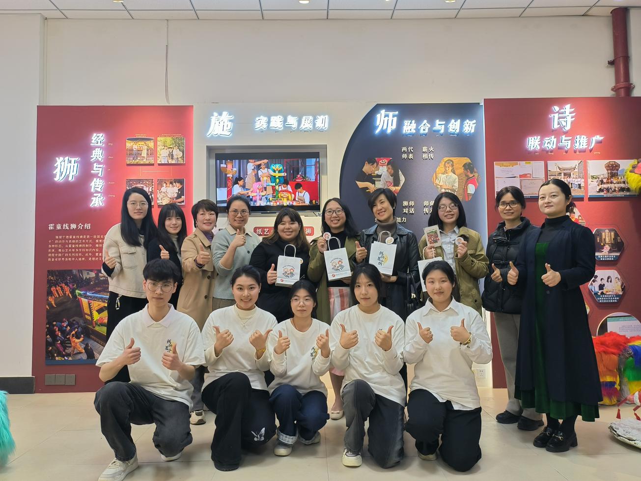 随后,代表团参观了线狮工作坊。宁德霍童线狮作为一项重要的国家级非物质文化遗产,以其独特的艺术形式与文化价值吸引了众人的目光。林乃珏老师带领工作坊学生介绍了霍童线狮的历史与发展、我院线狮工作坊建设与成效等情况,并带领来宾体验了文创产品、套色印章、徽章制作和线狮表演的操作。