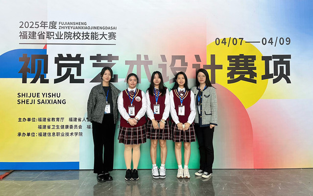 近日,由福建省教育厅主办的2025年福建省职业院校技能大赛高职组视觉艺术赛项在平潭圆满收官。艺术教育学院孙鋆老师、林加恩老师指导的艺术设计专业学生——魏于朝、黄静、林沂臻,历经数月精心备战,在全省40支参赛队伍的激烈竞争中脱颖而出,勇夺团体二等奖,排名第七,展现了我院在实践教学与人才培养方面的突出成果。