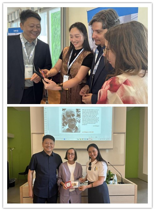 会议期间老师们参访了意大利马拉古奇国际中心开展学术交流。聆听了“瑞吉欧儿童”中心主席克劳迪娅·朱迪奇(claudia giudici)的讲座,观摩“儿童的一百种语言”主题展览和光影工作坊。我院线狮工作坊学生制作的线狮文创礼品在会议期间成为友好交流的纽带,获得参会代表们的认可和喜爱。