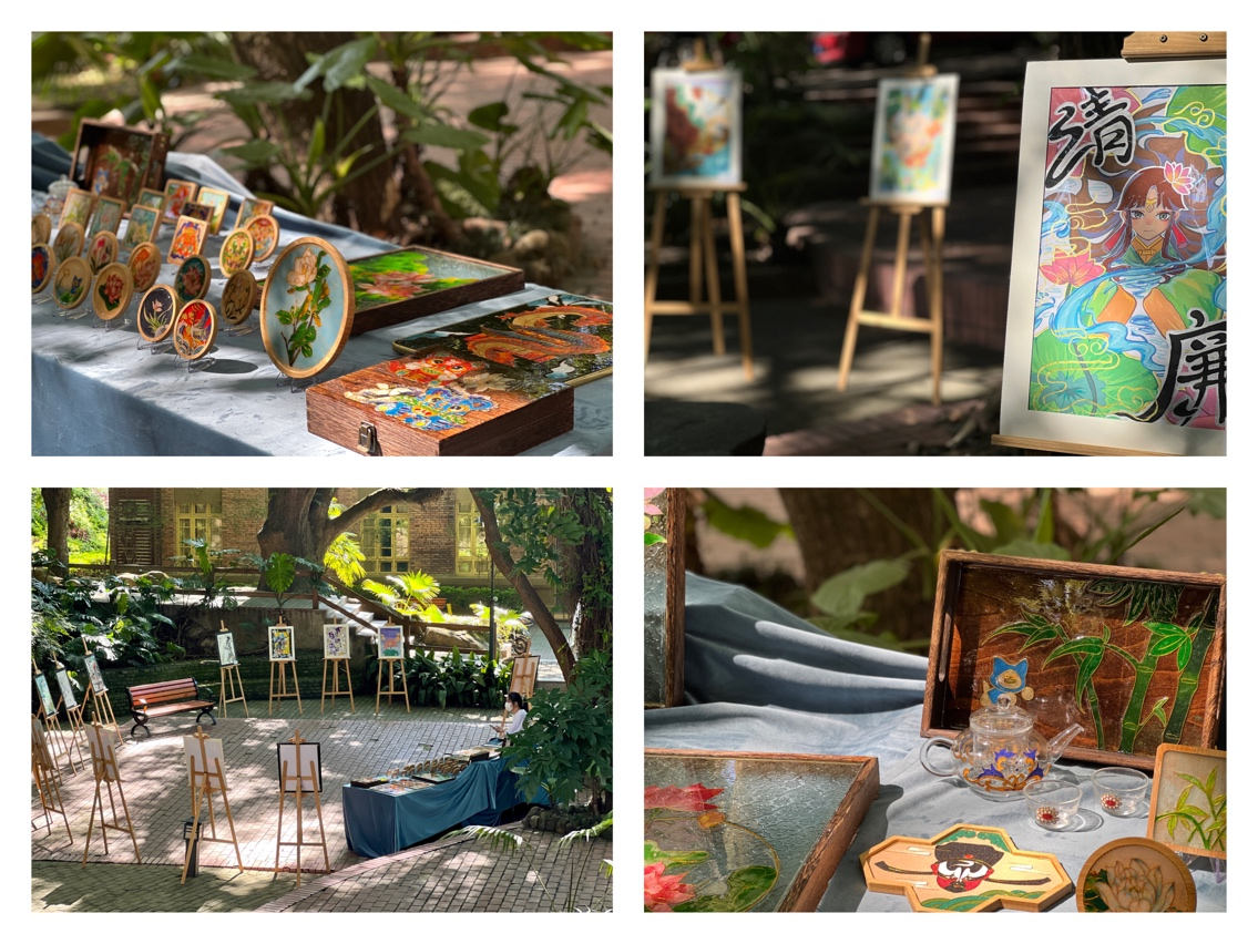 本次展出了以廉洁文化为主题的19幅手绘海报作品、多组蕴含廉洁元素的掐丝珐琅工艺作品。在学院赵倩、林思等教师的组织指导下,艺术教育(美术)2021班的同学们以"廉洁教育进校园"为主题开展项目式学习,在创作中融入清正廉洁理念,以"铁面无私辨忠奸"的北宋清官包拯、"出淤泥而不染"的莲花、比喻志行高洁的仙鹤等艺术形象为创作元素,将党风廉政建设与艺术创作实践相结合,借由艺术作品表达自己对廉洁的理解,以艺倡廉,弘扬清正廉洁之风。