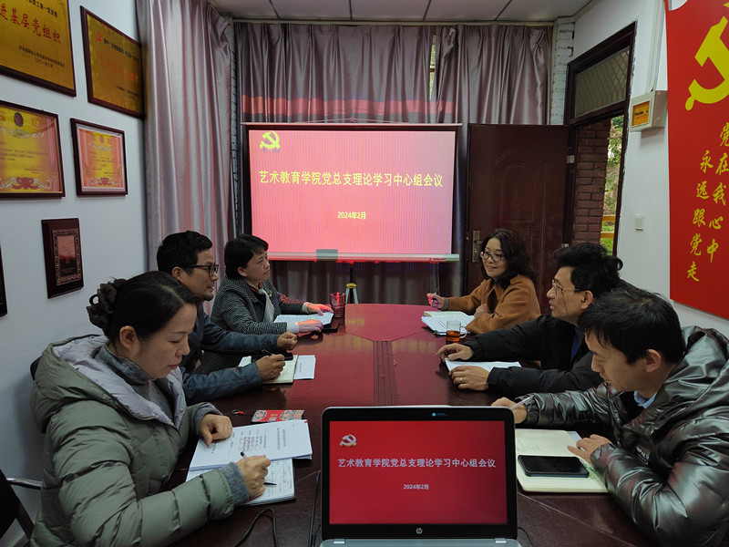 2月28日,艺术教育学院党总支召开理论学习中心组学习会,会议由学院党总支书记姜琪主持,全体党总支委员参会。