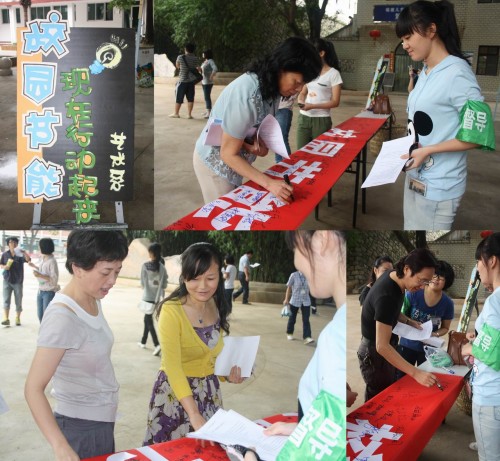 我们真诚的期待全院的大学生携起手来,自觉节能环保生活,共建绿色节能环保的大学校园,共建绿色节能环保的和谐社会。