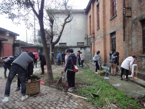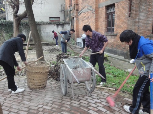 2012年新学期开学的前一天,艺术系组织发动全系同学对包干区及画室、琴房进行了全面的卫生大扫除,在同学们的辛勤劳动下,校园卫生发生了很大的变化,但仍存在部分清理难度较大的卫生死角,于是2月12日下午,艺术系全体三委学生干部自发对几处卫生死角进行了集中整治,使得包干区处处焕然一新,为开学第一天的教学开展提供了整洁的环境。