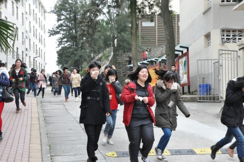 疏散演练在中午13:30正式开始。伴随发令员的一声令下,学生宿舍2号楼、3号楼、5号楼的火灾预警哨同时响起,全系住校生按照预先制定的演练方案和路线从学生公寓紧急疏散,快速有序地向安全地带集合,短短三分钟内撤离完毕。在整个疏散过程中,同学们始终保持严肃认真的态度,反应迅速,认真按照事先要求的消防须知,基本达到了本次消防疏散的目的和要求。