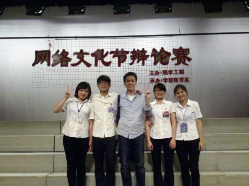 5月6号晚在礼堂举行学校首届网络文化辩论赛,参加此次辩论赛的有来自四个系部的辩论队。我系高度重视此次大赛,朱夏辉担任指导老师,由张凤纷、黄宝莉、林志敏、曾巧凤四位同学组成我系辩论队,开展了多次模拟对抗,集中指导,训练成果显著。