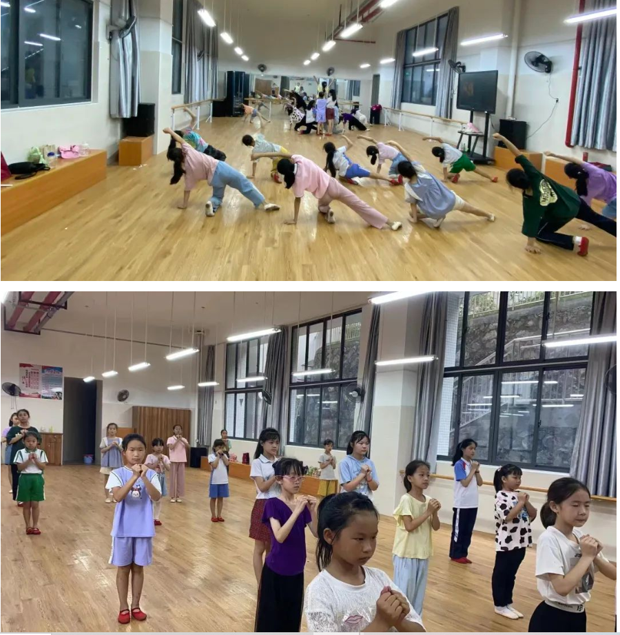 为了进一步提升乡村美育建设,丰富当地的美育教学内容,"三下乡"社会实践队成立了舞蹈教学组和音乐教学组,并进入了授课阶段。这不仅是一种责任和使命,也是一种磨炼和提升,更是志愿者们展示自我风采的舞台。