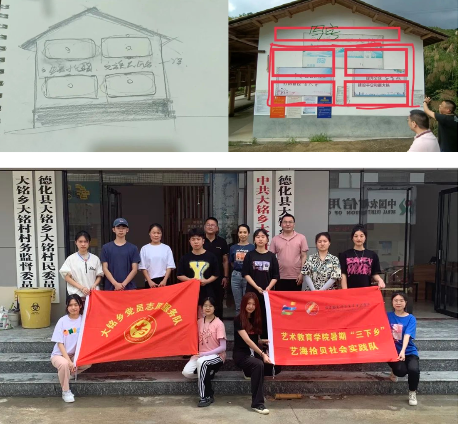 当天下午,实践队墙绘小组12名成员前往德化大铭村现场考察墙面情况,进行墙绘布局、人员分工等。本次墙绘作品的主题为"生姜小镇,文旅大铭",相信实践队员们最后的作品一定能给美丽的乡村增添几分别致的艺术风韵和文化气息。