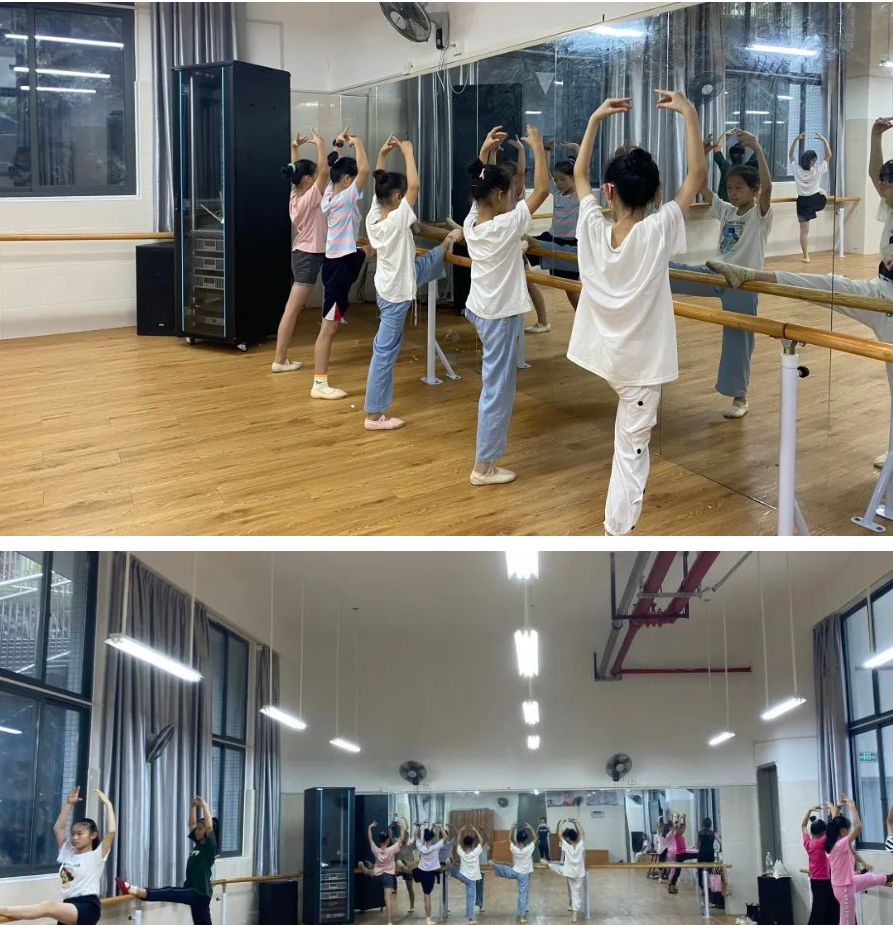 舞蹈教学组的孩子们在我们小老师的指导下开始了新的内容—芭蕾基础训练。这一项训练有助于培养学生的身体素质、技巧水平和舞台表现力。孩子们在老师指导下认真打磨每一个动作,汗水浸湿衣裳和头发,但学习和求知的动力,让师生们忘记了辛苦,沉浸在课堂教学中。