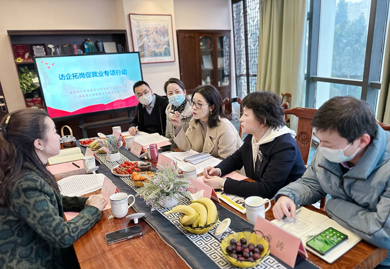 为牢牢把握新时代职业教育提质增效、增值赋能的发展方向,进一步促进“访企拓岗促就业”专项行动走深走实,推进落实产教融合发展,全面提升校企合作与协同育人水平,2024年1月15日,艺术教育学院院长王萍萍、党总支书记姜琪、副院长颜艳和学生管理科科长章涛等一行人,前往福建省儿童潜能开发教育协会开展访企拓岗促就业暨“艺术教育专业群产教融合实训基地”建设工作座谈会。