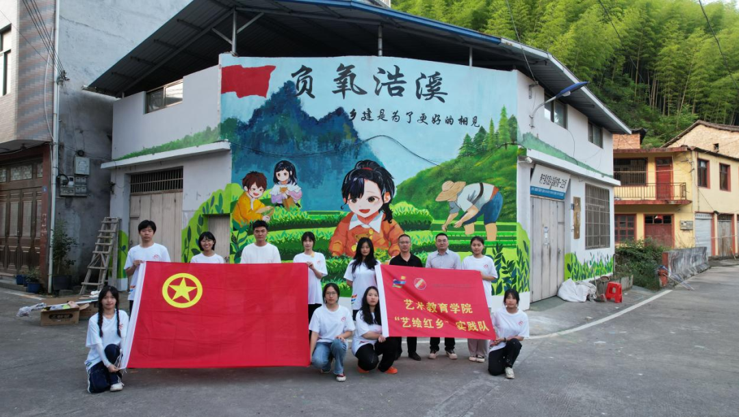 为推动学习贯彻习近平新时代中国特色社会主义思想主题教育走深走实,充分发挥高校优势,赋能乡村振兴,进一步展现"生态宜居、乡风文明、治理有效"的乡村振兴新风貌。在寿宁县团县委大力支持下,艺术教育学院"艺绘红乡"社会实践队在坑底乡浩溪村,开展了为期4天"筑梦乡村振兴,共绘美丽画卷"的墙体彩绘活动。