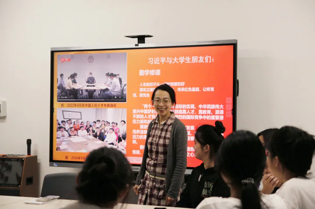 以爱陪伴,做学生成长的知心友。她深入学生社区,每次值班走访3-5间宿舍,了解学生日常学习生活,与学生分享大学生活的成长酸甜苦辣。毕业学生也常与她联系分享升学发展、考研成功喜悦、军营生活、工作的困惑与成长等。一声“姐”,一个“沸羊羊”的昵称,是对她这位知心友的认可。2021年她被评为校第四届“年度辅导员人物”。