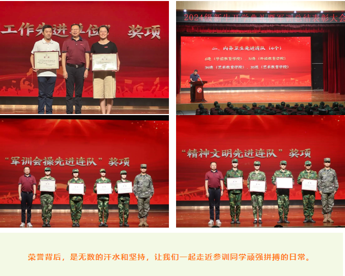 2024年9月10至23日,艺术教育学院2024级新生们参加了为期14天的军训。他们不惧风吹日晒,认真训练,站军姿、齐步走……虽腰酸背痛,但同学们的脊梁却更加挺拔,虽喊哑嗓子,但意志却更加坚韧。在军训的磨砺中,同学们成为一个坚不可摧的集体!