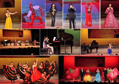 本场演出内容质量高,涵盖广,形式多样,演出的节目共20个,其形式包括声乐、器乐、舞蹈、小品等,演出曲目包括《祖国万岁》、《太湖美》、《琵琶语》、《祖国之恋》等优秀曲目,还有学生的原创歌曲作品《我们》。曼妙的旋律沟通着彼此的心灵;跳跃的音符点缀着多彩的生活;婉转的曲调中,可以体会灵感激荡的火花;悠扬的旋律中,能够触碰心灵深处的感动。整场演出高潮迭起,特别是毕业班同学深情演绎的音乐剧《同桌的你》,深深表达了他们对学院、对师长的感激、不舍及同学间的深厚情谊,赢得了全场观众的阵阵热烈掌声,演出在康宇丹等老师的《节日欢歌》的热烈气氛中圆满结束。艺术系师生联袂奉献的精彩演出感染了每一位观众,并带给他们以高品质的艺术享受,也充分展示了我系师生较高的业务素质。