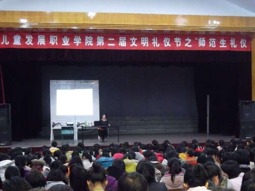 12月13日,我院在礼堂举行"第二届文明礼仪节之师范生礼仪"讲座。此次活动由院学工部主办,艺术系承办。艺术系副书记姜琪老师及各系同学600多名参加了此次讲座。